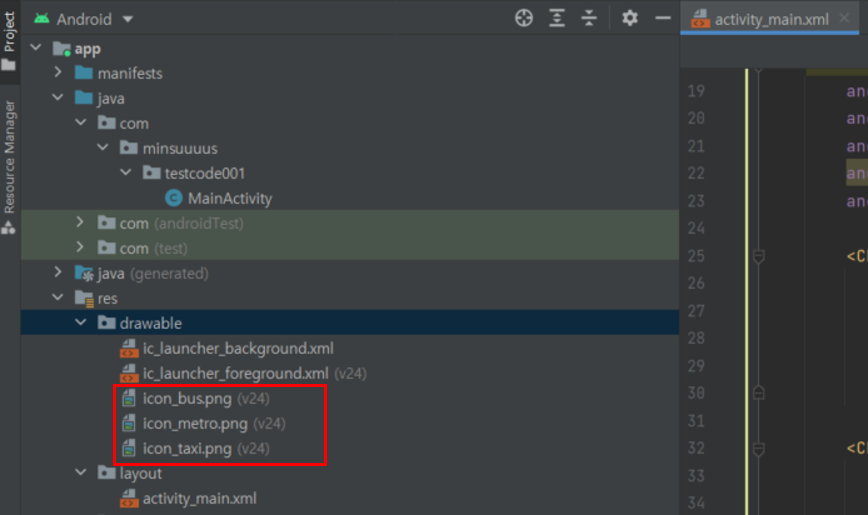- drawable 디렉터리에 교통수단 이미지파일 저장