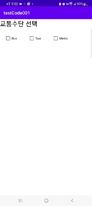작성한 체크박스 테스트 앱을 실행해보면 다음과 같이 구동되는 것을 확인할 수 있다.