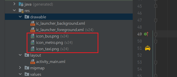 - drawable 디렉터리에 교통수단 이미지파일 저장