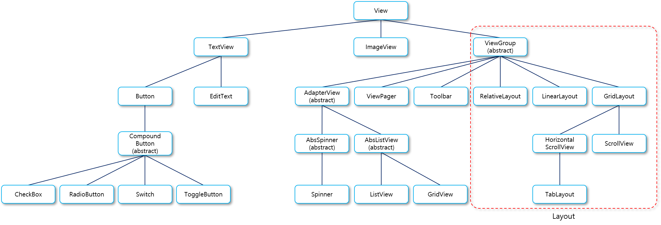 레이아웃은 ViewGroup 클래스를 상속하여 작성된다.