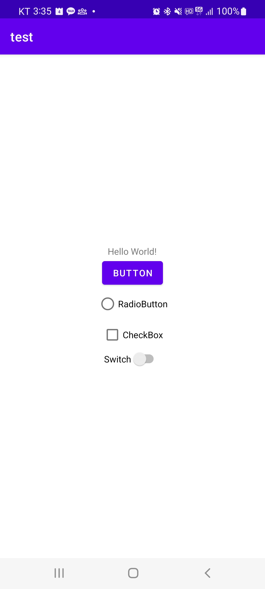 <TextView>, <Button>, <RadioButton>, <CheckBox>, <Switch> 등의 뷰들을 추가할 수 있다.