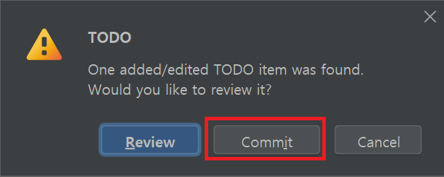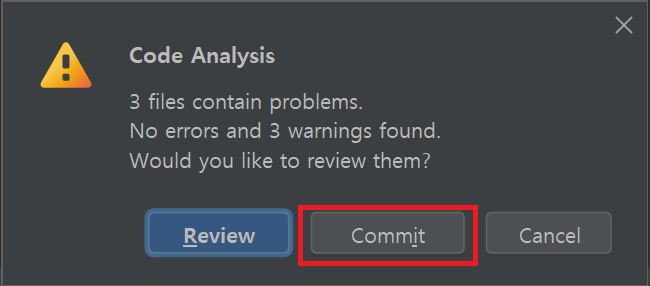 커밋 버튼을 누르면 다음과 같이 경고창이 뜨는데, 무시하고 Commit 버튼을 눌러준다.