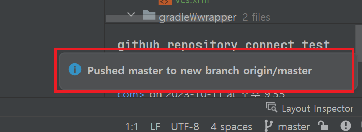 성공적으로 푸시가 완료되면 다음과 같이 푸시가 완료되었다는 안내 메시지가 뜬다.