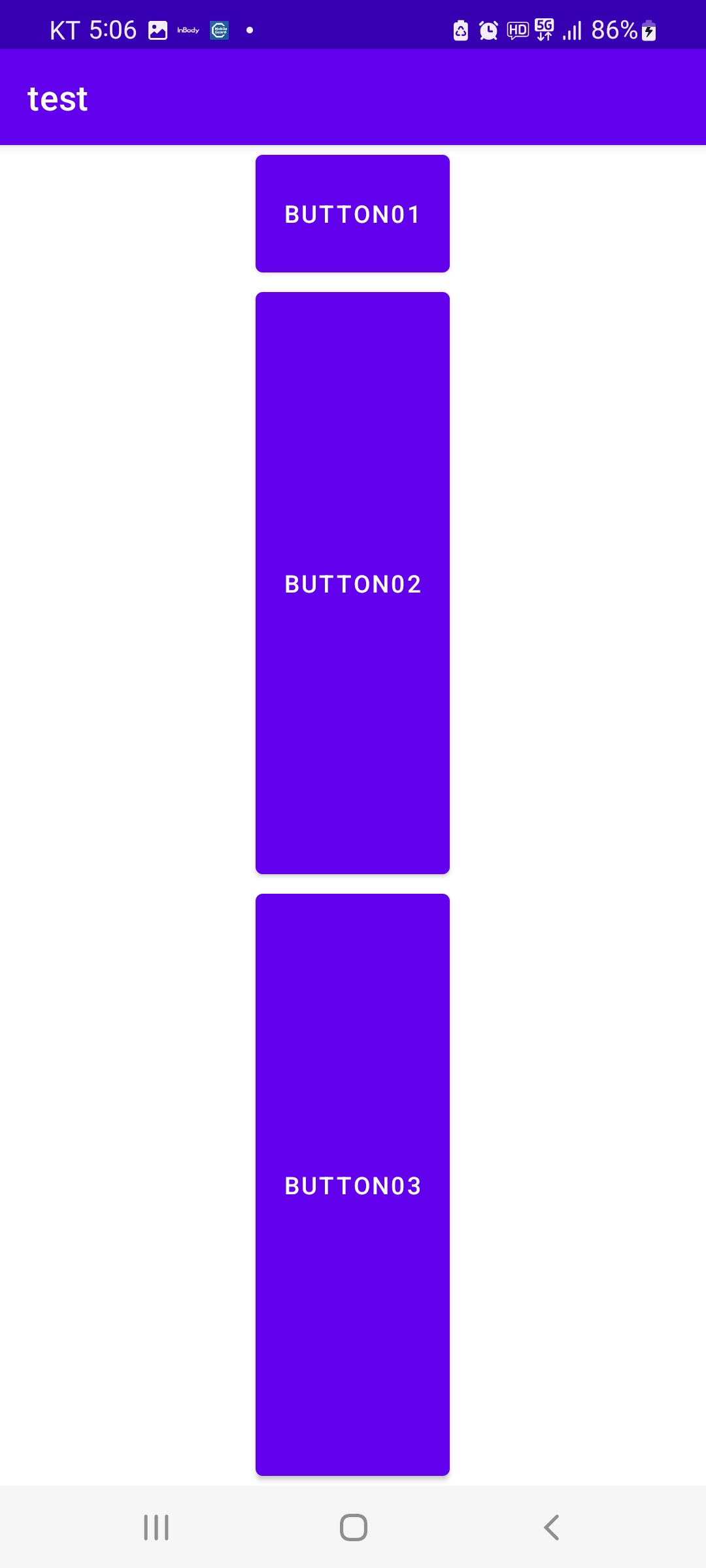 레이아웃 안의 버튼 속성에 weight를 적용해보았다.